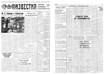 Учредитель: журналистский коллектив «Известий» – 1991. – 27 февраля, среда. – № 50 (23316). – 6 полос.