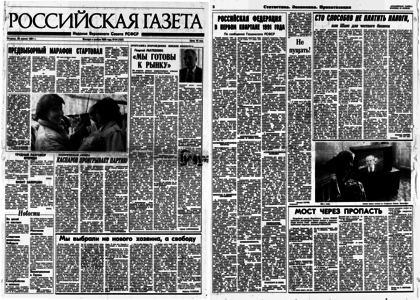 «Как и следовало ожидать, по отношению к кандидатуре Президента России оппозиция оказалась трогательно единодушна. В прошедшие выходные Бориса Ельцина на этот пост выдвинул съезд Демпартии России и пленум Координационного совета «республиканцев» <…>».