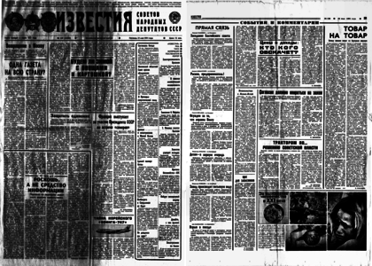 «Московский областной Совет народных депутатов призвал Президиум Верховного Совета РСФСР приостановить решение о проведении 12 июня опроса общественного мнения об объединении Москвы и области в единый столичный округ. Облсовет считает, что достаточно провести социологические исследования, а жителей области не надо соблазнять столичными стандартами жизни и нормами обеспечения товарами...».