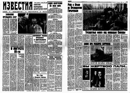 «Известия Советов народных депутатов СССР». – 1991. – 22 августа, четверг. – № 200 (23466). – 6 полос.