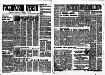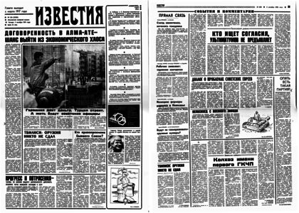 Учредитель – журналистский коллектив «Известий» 1991. – 3 октября, четверг. – № 236 (23502) – 8 полос.