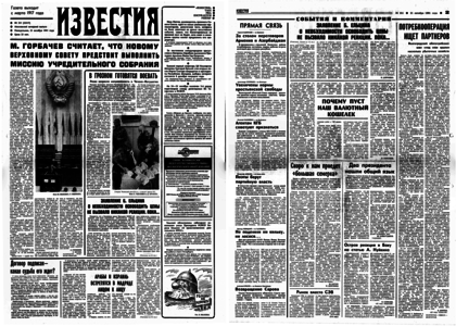 Учредитель: журналистский коллектив «Известий». – 1991. – 21 октября, понедельник. – № 251 (32517) – 8 полос.