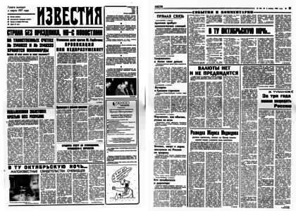 Учредитель – журналистский коллектив «Известий». – 1991. – 6 ноября, среда. – № 265 (23531). – 6 полос.