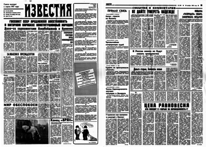 Учредитель: журналистский коллектив «Известий» – 1991. – 28 ноября, четверг. – № 283. – 8 полос.