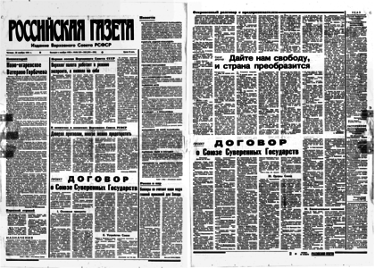 Фактор России. <…> Россия оказалась сейчас в гораздо более сложном положении, чем все остальные республики. Произошедший в августе крах союзного центра застал российские власти врасплох. <…>