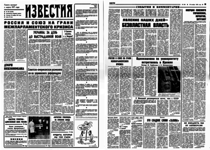 Учредитель: журналистский коллектив «Известий» – 1991. – 29 ноября, пятница. – № 284. – 12 полос.