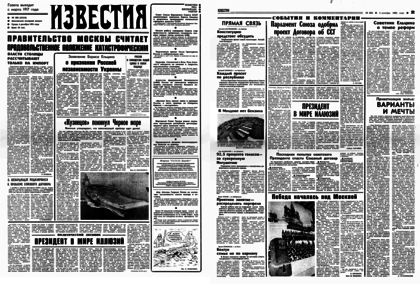 Учредитель – журналистский коллектив «Известий». – 1991. – 4 декабря, вторник. – № 288 (23554). – 8 полос.