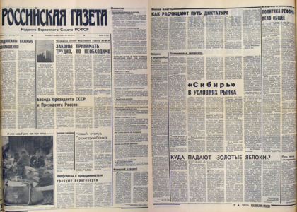 Учредитель: журналистский коллектив «Известий» – 1991. – 7 декабря, суббота. – № 291. – 4 полосы.