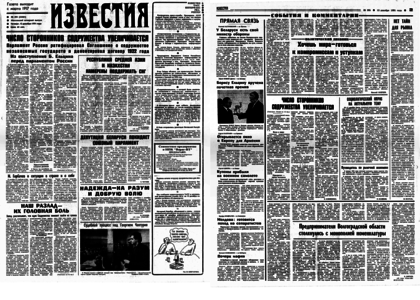 Учредитель: журналистский коллектив «Известий». – 1991. – 12 декабря, четверг. – № 295 (23561). – 6 полос.