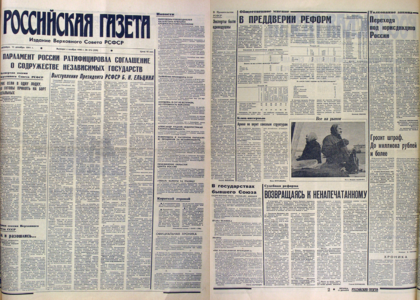 «Ратификация российским парламентом беловежских соглашений и его решение об отзыве депутации России из Верховного Совета СССР стала причиной того, что намеченное на вторую половину дня 12 декабря совместное заседание палат союзного парламента не состоялось.