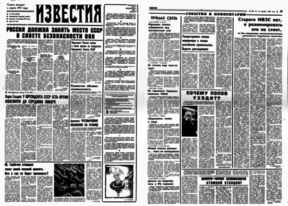 Учредитель: журналистский коллектив «Известий» – 1991. – 17 декабря, вторник. – № 299. – 8 полос.
