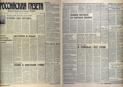 Учредитель: Московский городской Совет народных депутатов. – 1991. – 21 декабря, суббота. – № 165. – 8 полос.