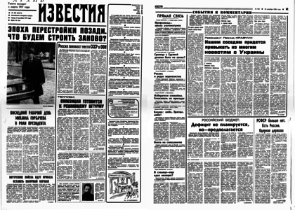 Учредитель: журналистский коллектив «Известий» – 1991. – 25 декабря, среда. – № 305. – 6 полос.