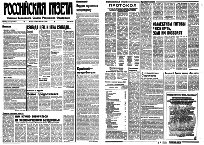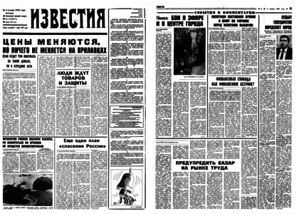 Учредитель: журналистский коллектив «Известий». – 1992. – 3 января, пятница. – № 3 (23577). – 8 полос.