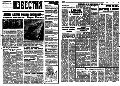 Учредитель: журналистский коллектив «Известий» – 1991. – 4 января, суббота. – № 4 (23578). – 4 полосы.