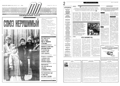 Учредитель: общество «МН» – Народная газета» – 1991. – 5 января, воскресенье. – № 1. – 24 полосы.