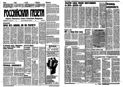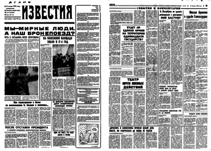 Учредитель: журналистский коллектив «Известий». – 1992. – 13 января, понедельник. – № 10 (23584). – 8 полос.