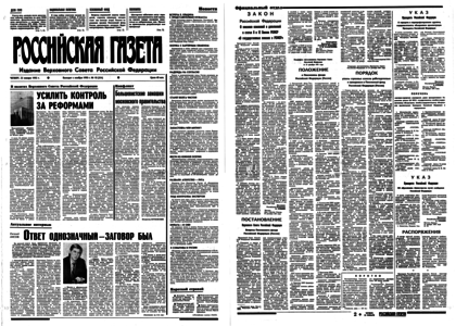 Учредитель: журналистский коллектив «Известий». – 1992. – 23 января, четверг. – № 19 (23593). – 8 полос.