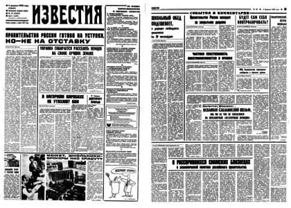 Учредитель: журналистский коллектив «Известий». – 1992. – 4 февраля, вторник. – № 29 (23603). – 8 полос.