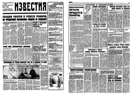 Учредитель: журналистский коллектив «Известий». – 1992. – 20 февраля, четверг. – № 43 (23617). – 8 полос.
