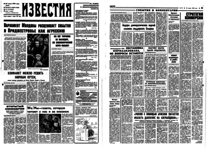 Учредитель: журналистский коллектив «Известий». – 1992. – 25 марта, среда. – № 72 (23646). – 6 полос.