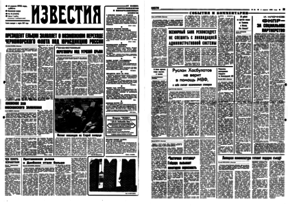 Учредитель: журналистский коллектив «Известий». – 1992. – 4 апреля, суббота. – № 81 (23655). – 6 полос.