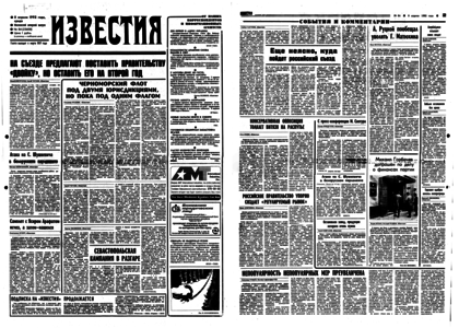 Учредитель: журналистский коллектив «Известий». – 1992. – 8 апреля, среда. – № 84 (23658). – 8 полос.