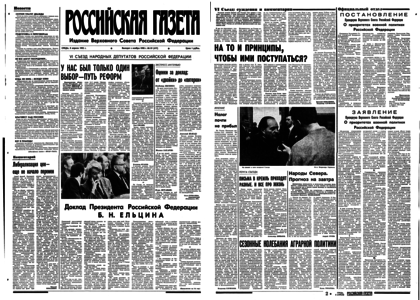 Но пора сказать и о второй группе «симптомов», предвестниках того, что Съезд вопреки утверждению многих может сыграть и конструктивную роль. Судя по целому ряду выступлений, по характеру и тону некоторых содокладов, произнесенных заместителями председателя Верховного Совета РФ (в частности, В. Шумейко), руководителями ряда подразделений высшей законодательной российской власти, там значительно влияние и тех сил, что готовы взять курс не на конфронтацию с президентом и правительством, а на взаимодействие и сотрудничество. <…>».