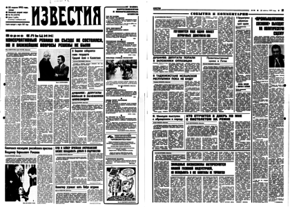 Учредитель: журналистский коллектив «Известий». – 1992. – 22 апреля, среда. – № 96 (23670). – 8 полос.