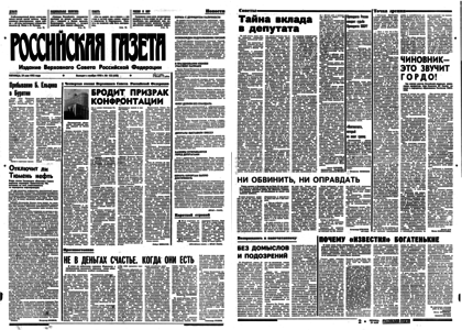 Учредитель: журналистский коллектив «Известий». – 1992. – 29 мая, пятница. – № 119 (23693). – 8 полос.