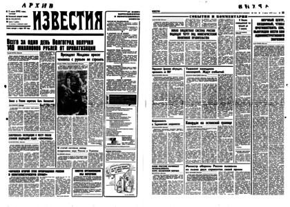 Учредитель: журналистский коллектив «Известий» – 1992. – 2 июля, четверг. – № 153 (23727). – 8 полос.