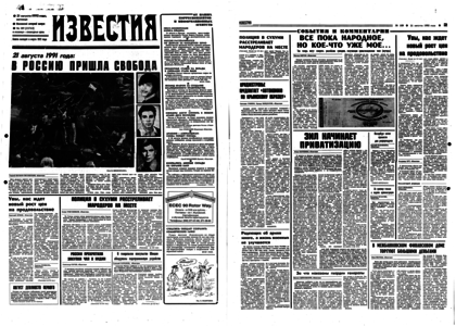 Учредитель: журналистский коллектив «Известий» – 1992. – 21 августа пятница. – № 189 (23763). – 8 полос.