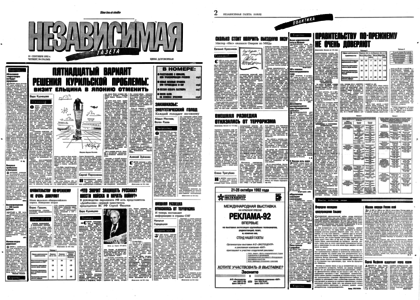 Учредитель: Московский городской Совет народных депутатов. – 1992. – 10 сентября, четверг. – № 174 (345). – 8 полос.