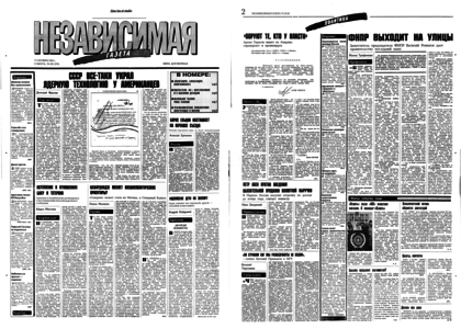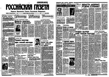 Учредитель: Московский городской Совет народных депутатов – 1992. – 17 октября, суббота. – № 201 (372). – 8 полос.