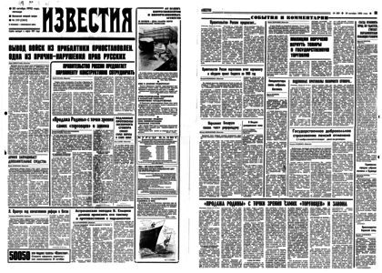 «Президент России Б. Ельцин отдал распоряжение на время остановить вывод российских войск из прибалтийских государств. Отныне ни один российский солдат не покинет пределы Латвии, Литвы и Эстонии до тех пор, пока Россия, не подпишет с этими странами межгосударственные соглашения, которые регламентировали бы порядок вывода и предусматривали меры социальной защиты военнослужащих и их семей. <…>