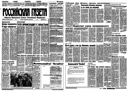 Учредитель: журналистский коллектив «Известий». – 1992. – 30 октября, пятница. – № 239 (23813). – 8 полос.