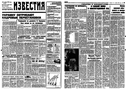 Учредитель: журналистский коллектив «Известий». – 1992. – 5 ноября, четверг. – № 243 (23817). – 8 полос.