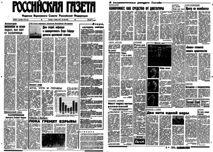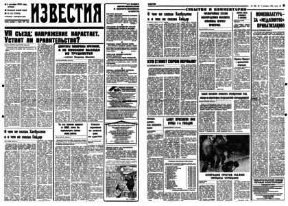 Учредитель: Журналистский коллектив «Известий» – 1992. – 3 декабря, четверг. – № 262 (23836). – 8 полос.