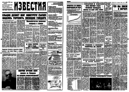 Учредитель: журналистский коллектив «Известий». – 1992. – 8 декабря, вторник. – № 265 (23839). – 6 полос.