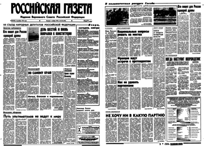 «Провал поправок, ставящих правительство под полный контроль парламента, сделал на два дня судьбу гайдаровской команды еще более непредсказуемой. <…> Теперь же, во вторник, обе власти завивали позиционные бои и приступили к взаимным маневрам. <…>