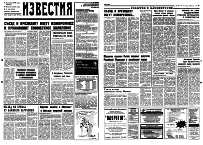 Учредитель: Журналистский коллектив «Известий» – 1992. – 11 декабря, пятница. – № 268 (23842). – 8 полос.