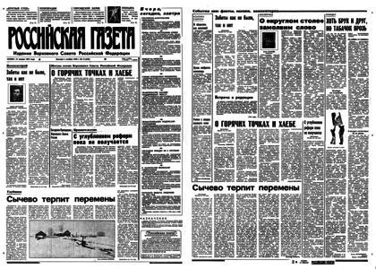 Учредитель: Журналистский коллектив «Известий» — 1993. — 21 января, четверг. — №12 (23867). — 18 полос.