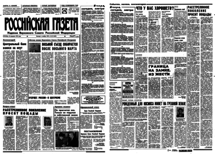 «На утреннем совместном сессионном заседании российского парламента 25 февраля практически было принято решение созвать внеочередной съезд народных депутатов. Официальное объявление о его созыве должно прозвучать в следующий четверг. Тогда же станет известна и дата начала работы съезда. Предположительно — 10 марта. Аппарату ВС даны указания начать подготовку к этому событию. <…>