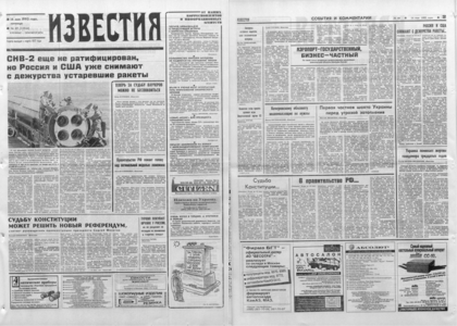 Учредитель: журналистский коллектив «Известий» — 1993. — 14 мая, пятница. — №89 (23944). — 8 полос.
