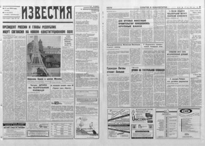 Учредитель: журналистский коллектив «Известий». — 1993. — 27 мая, четверг. — № 98 (23953). — 8 полос.